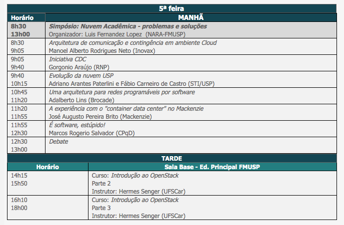 Dans l'État de São Paulo, les principales universités de recherche commencent à créer leurs nuages de calcul et leurs centres de calcul discutent depuis un certain temps des réseaux définis par logiciel. Des projets tels que l'USP Cloud, le FIBER (Future Internet Testbeds Experimentation between Brazil and Europe) qui, à São Paulo, implique CPqD, RNP, UFSCar et USP, et le projet ANSP OpenFlow, qui implique la plupart des universités de recherche en São Paulo, sont des exemples de cette tendance.